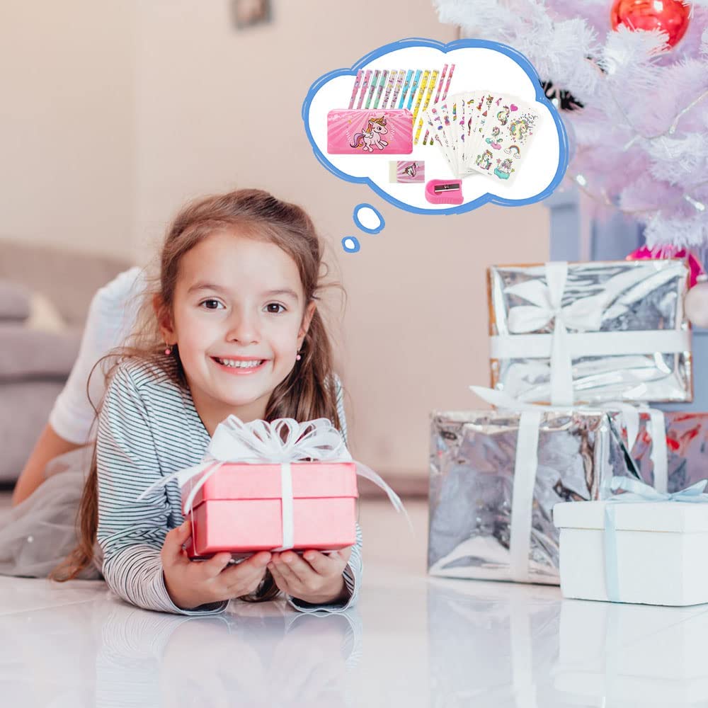 OFFCUP Unicorn Gift for Girls, 27Pcs Unicorn Stationery Set School Supplies with Waterproof PVC Pencil Case, Notebook, Pens, Pencils, Sharpener, Eraser, Ruler, Unicorn Tatto Toys Gift Sets
