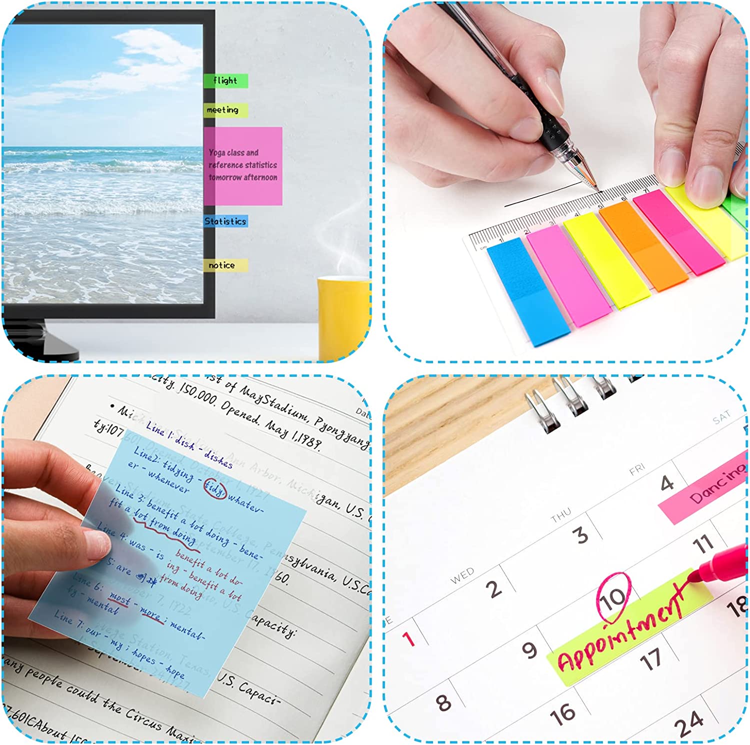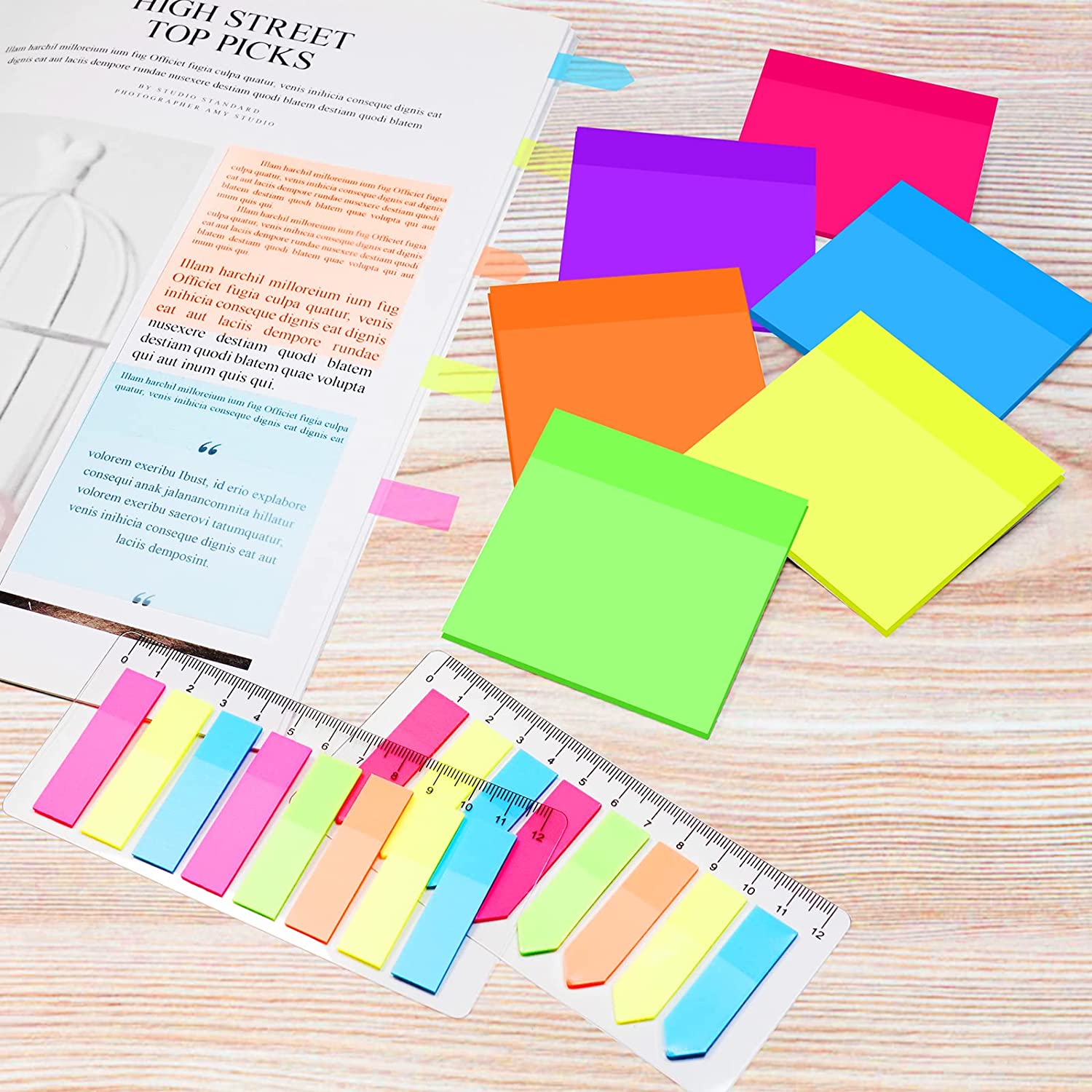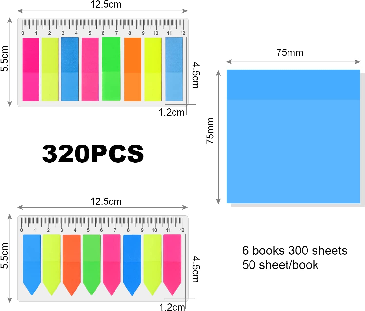About this item Combinaion Set-Includes 3×3 inch/7.5×7.5 cm size clear sticky notes, 300 pack in total (6 notepads, 50 pack each); 320 pack index tab flags(2 shapes, 160 pack each), enough to meet your various needs. Transparent Design-Our transparent sticky notes can be attached to books, magazines or documents, allowing you to clearly see the original text and mark the text you need to focus on. Premium Material-Thr clear note pads are made of high-quality waterproof material, which will not wipe off the writing or damage the paper, suitable for writing with pens, pencils, highlighters or markers. Clear Ruler Included-Comes with a 12cm transparent soft ruler, which is suitable for measuring any curved or flat surface. You can use it to measure the space between two points, the length of the line, the size of any cylindrical objects or other irregular things. Wide Application-Used in library, office, school, study or home. You can stick it on bibles, textbooks, doors, walls, whiteboards, computer screens and other smooth surfaces to make your life and work more enjoyable and efficient.